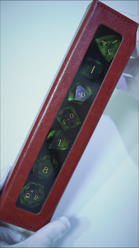 - 7 pcs of handmade resin dice