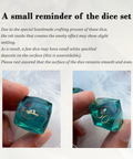 These are handmade and polished sharp edge resin dice with inclusions. And the dice are infused with beautiful glitter flakes. I recommend that you can roll them on something with a soft surface, like a soft wool felt dice tray. You can also search the solf tray on the store :) And if you purchase more than 2 sets (include 2 sets) of dice, you will get a dice tray for free!